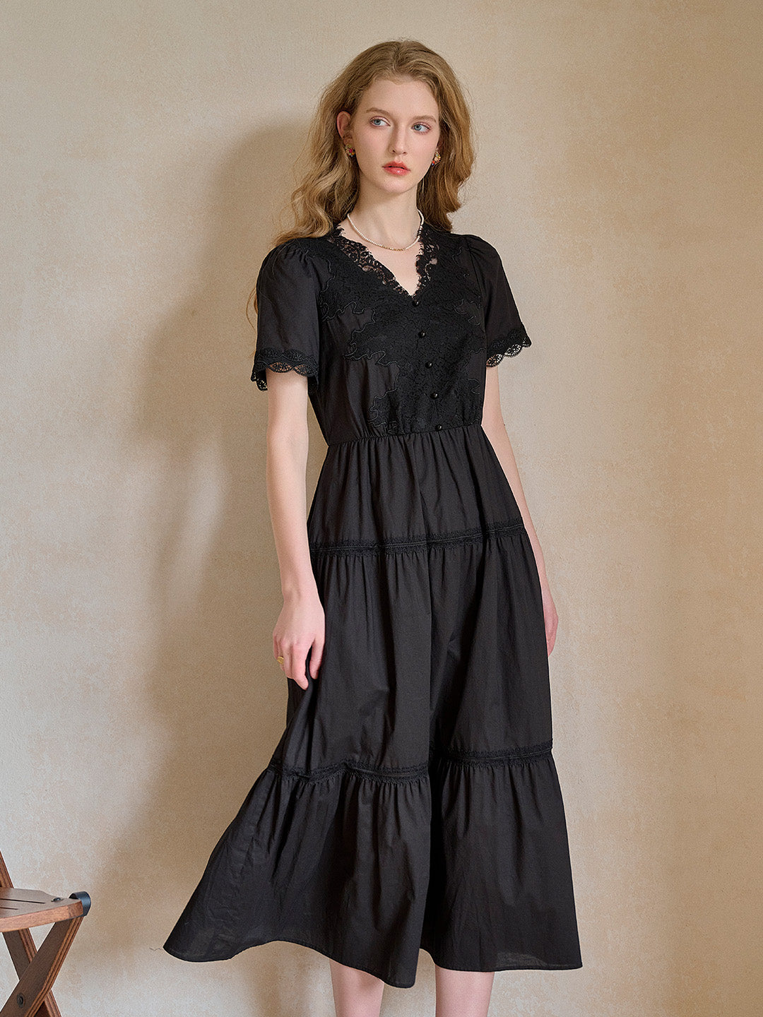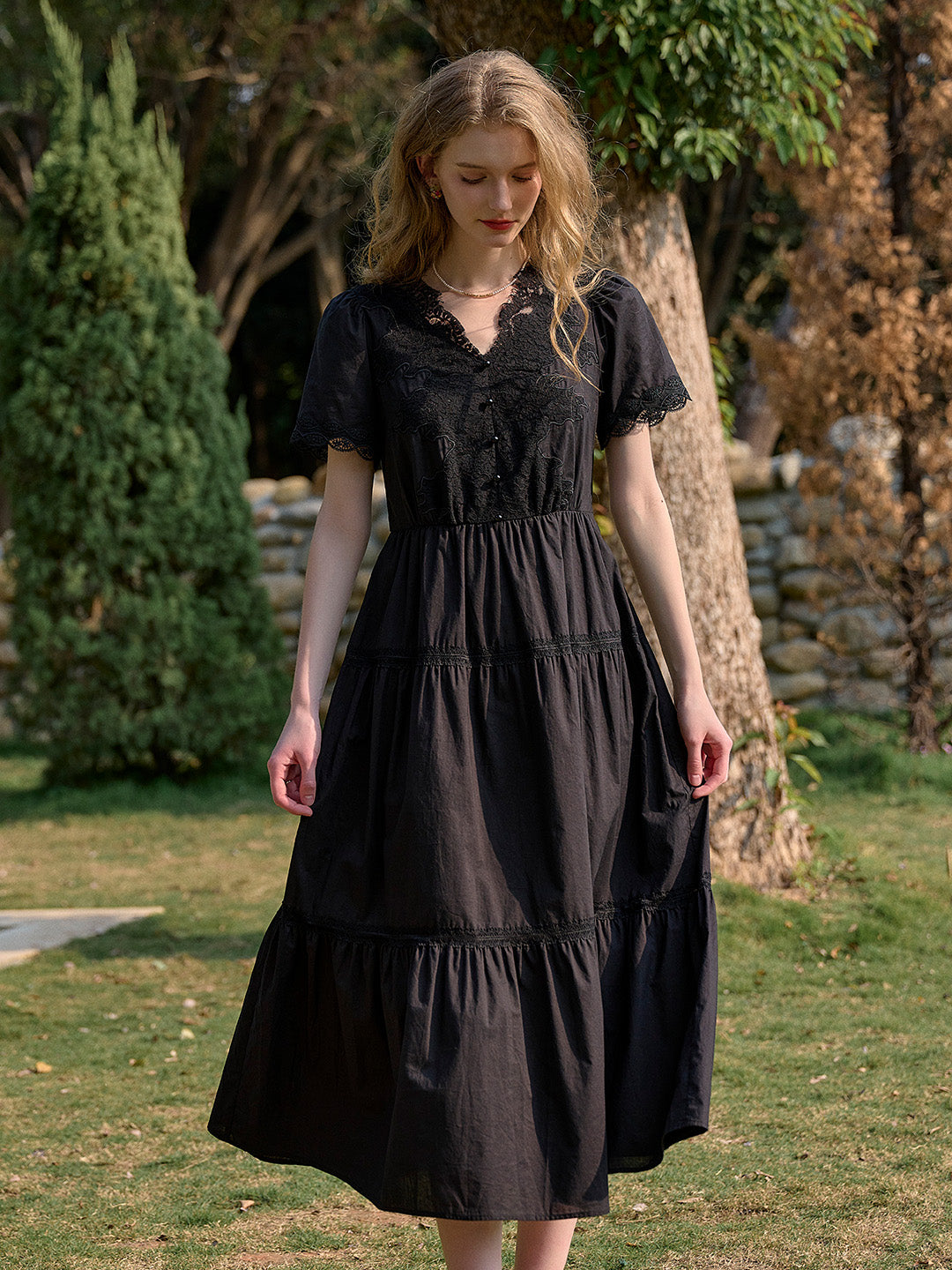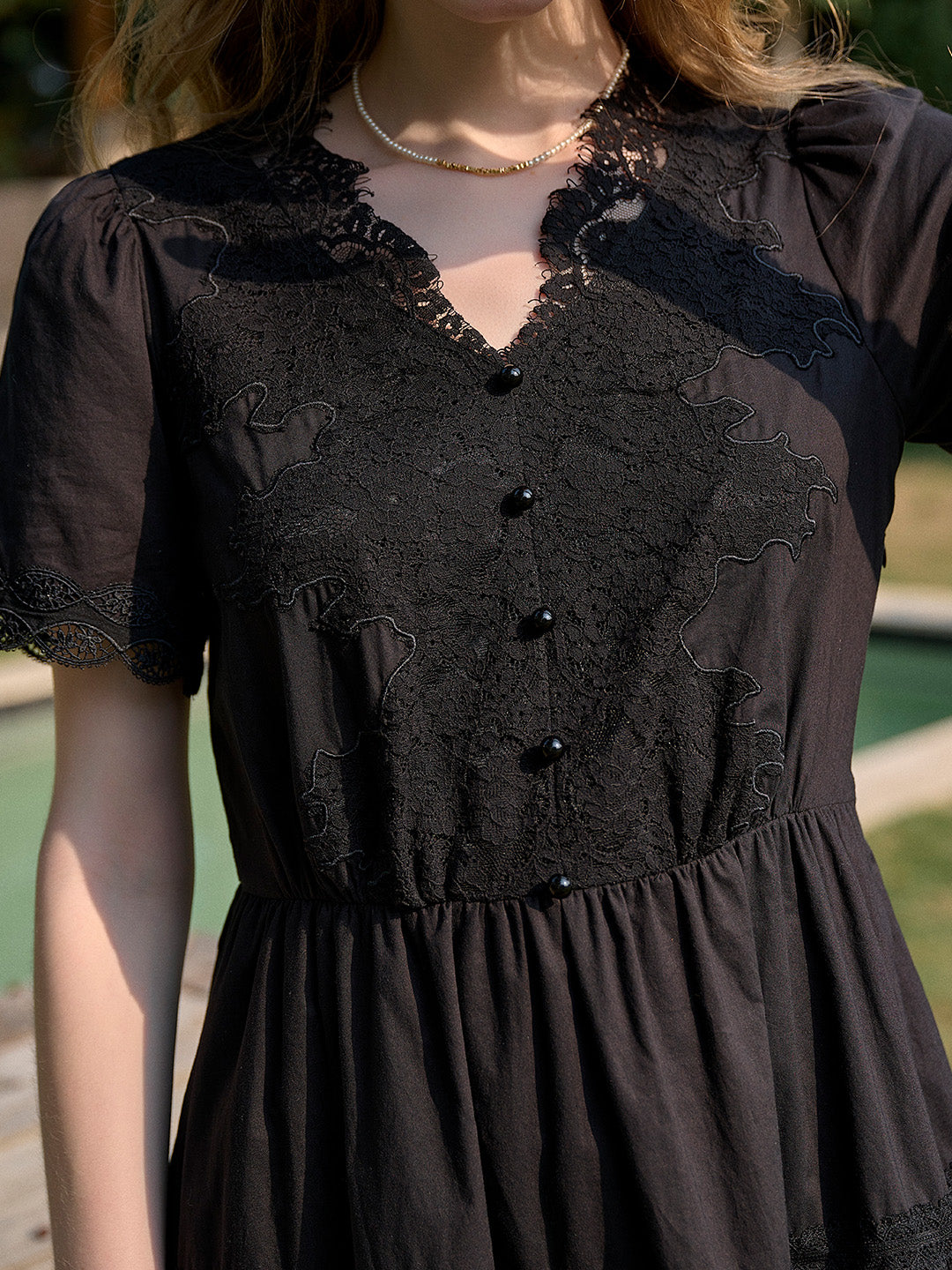 SKU: clove-v-neck-lace-waist-dress-20713180