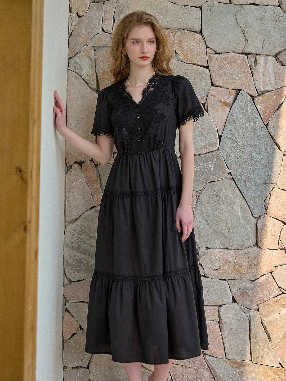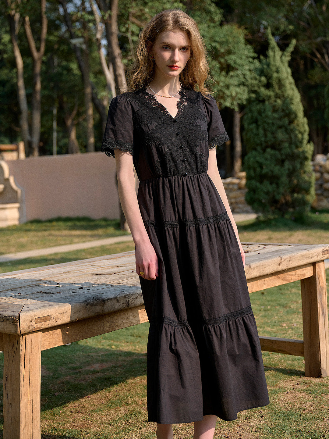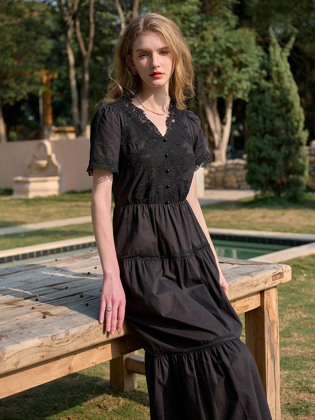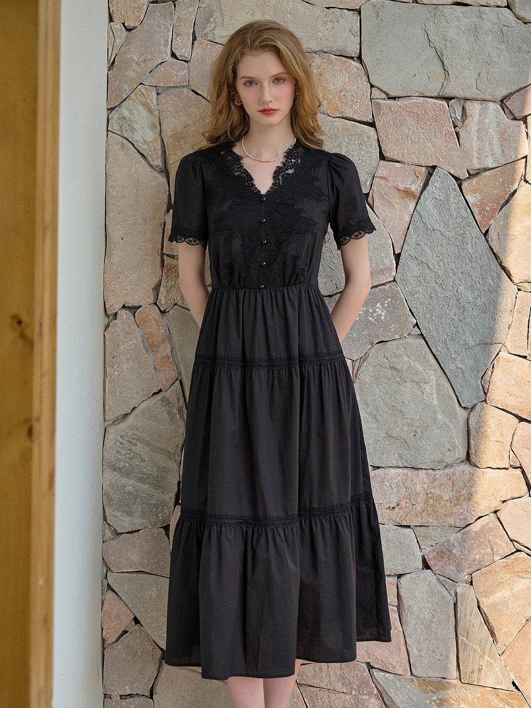 SKU: clove-v-neck-lace-waist-dress-20713180