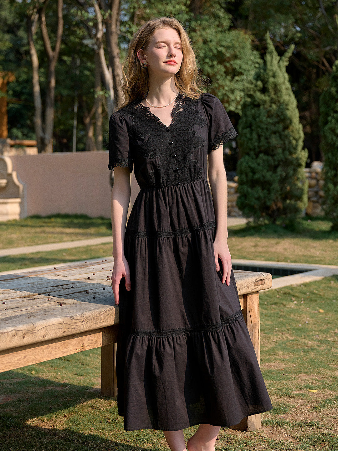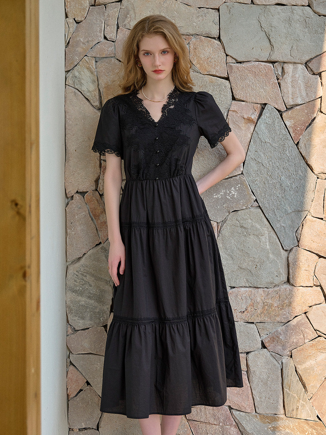 Clove V-Neck Lace Waist Cotton Dress