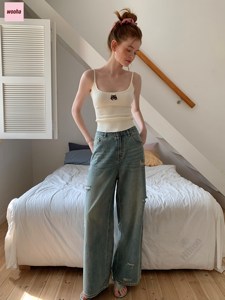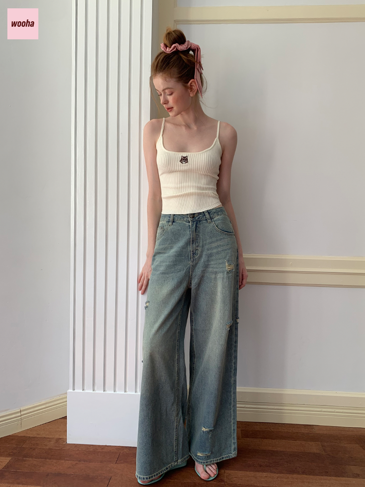 SKU: damage-straight-casual-high-waist-denim-pants-20699768