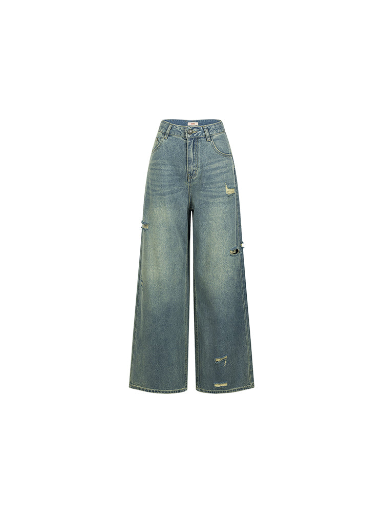 Damage Straight Casual High-Waist Denim-Pants