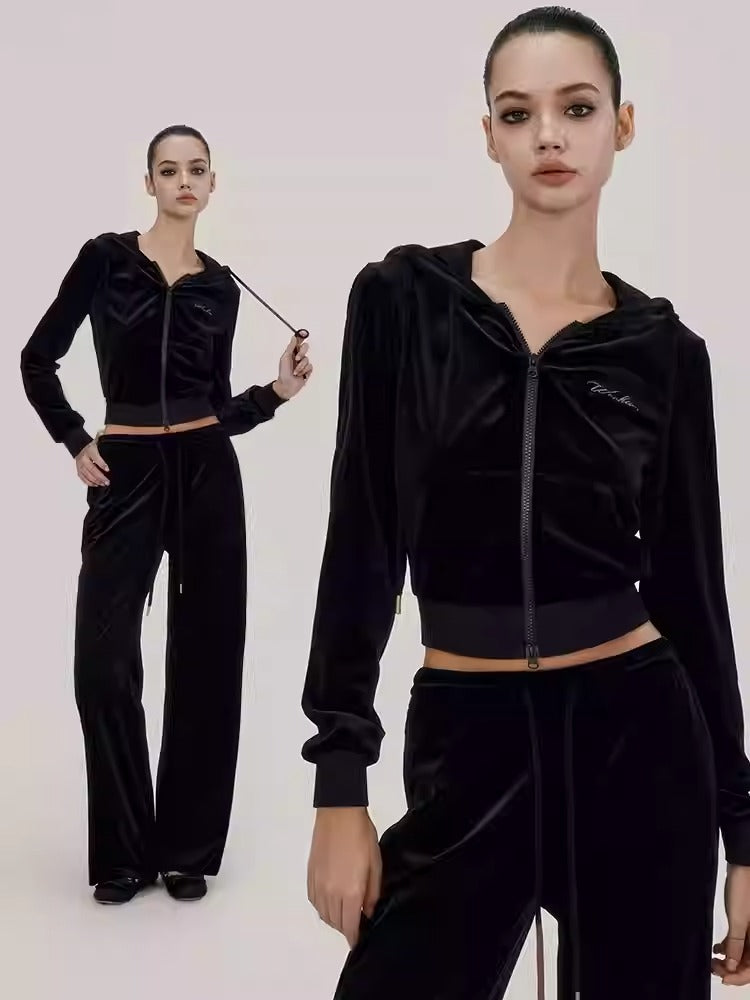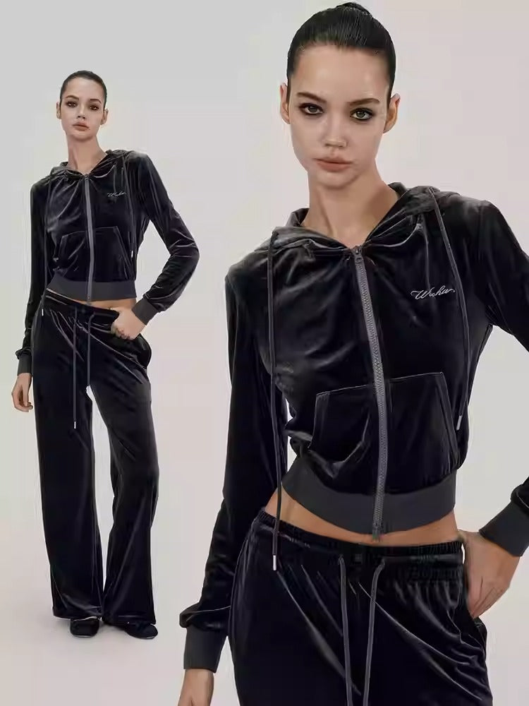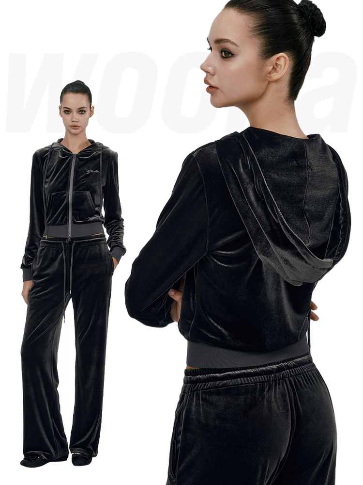Set-Up Velvet Casxual Relax Hoodie Loose Parka&Pants